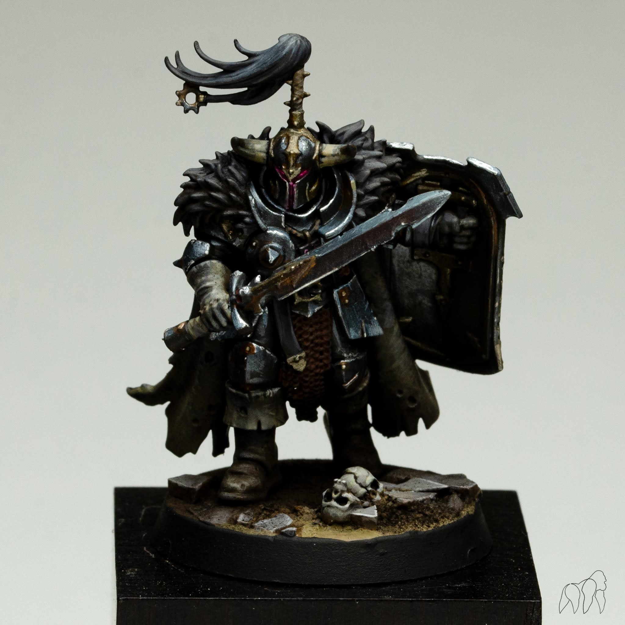 The topics in the course are a lot of theoretical knowledge about light on objects and geometric shapes, how to simulate light and shadow with acrylic paints. How to create volume with the right balance. Each course includes a figure between 35 and 75mm. In two days you will learn to paint your own scheme, with the help of mood pictures and artworks, you can implement your individual vision. He also support each student very individually and give advice and suggestions for solutions. You should already bring certain basics with you, as the course is more oriented towards advanced techniques.