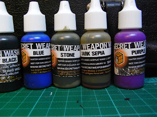 My first impression of the Secret Weapon Washes was like wow, they got really a great amount of different ones, seems like there is a tone for every particular need in the future. Very impressive and one that really can make your painting easier. Just have a look on all those washes i got, their funny names and the very often fitting color connected to them ... some might appear twice as this is a amateur photo stream during the review ...
