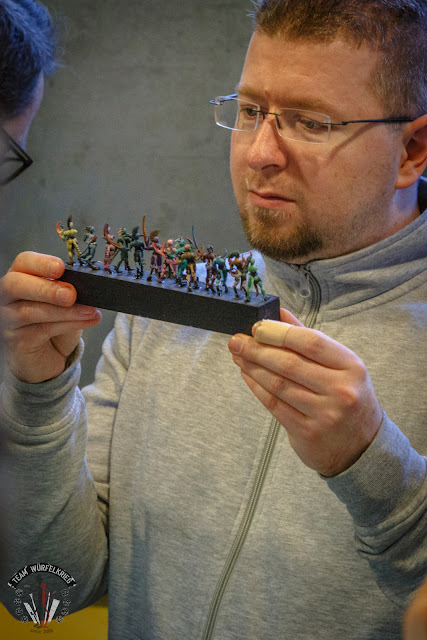 arrived and we missed nobody. Everybody was ready and eager to learn and proceed. Before we paint we still had some minor tasks to fullfil to get everything ready for priming at noon. We were also able to see many miniature projects on the miniature table as many people brought their beautiful projects to look at.