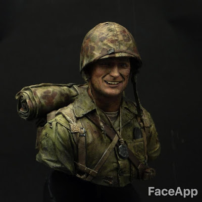 I thought about doing this to some busts of mine that I have painted in the past and let them smile. While doing this I had so much fun you can not imagine and I realized that our figure world is packed with serious looking figures all around. I mean is smiling not healthy? Hope this makes you smile ...