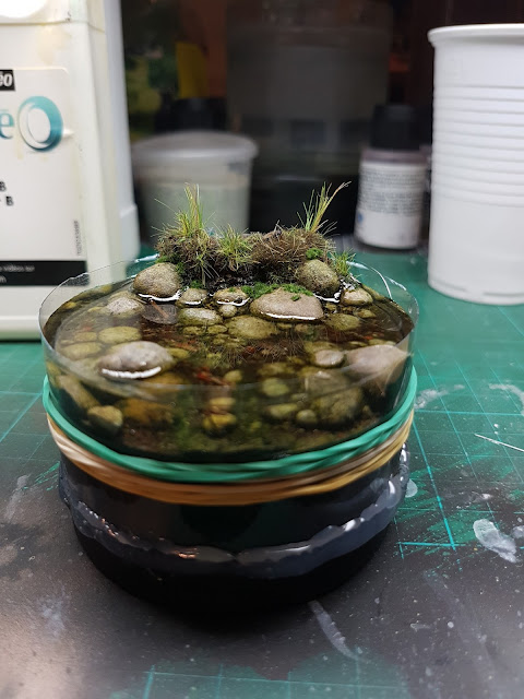 still water is mostly used to recreate some wet or damp areas on bases/terrain you can also use it to fill some little pools of water, the experience I made is that these kinds of water effects are curing rather bad and shrink a lot if they are used in thick layers. For now, still water only comes to use if I need a good gloss coat.