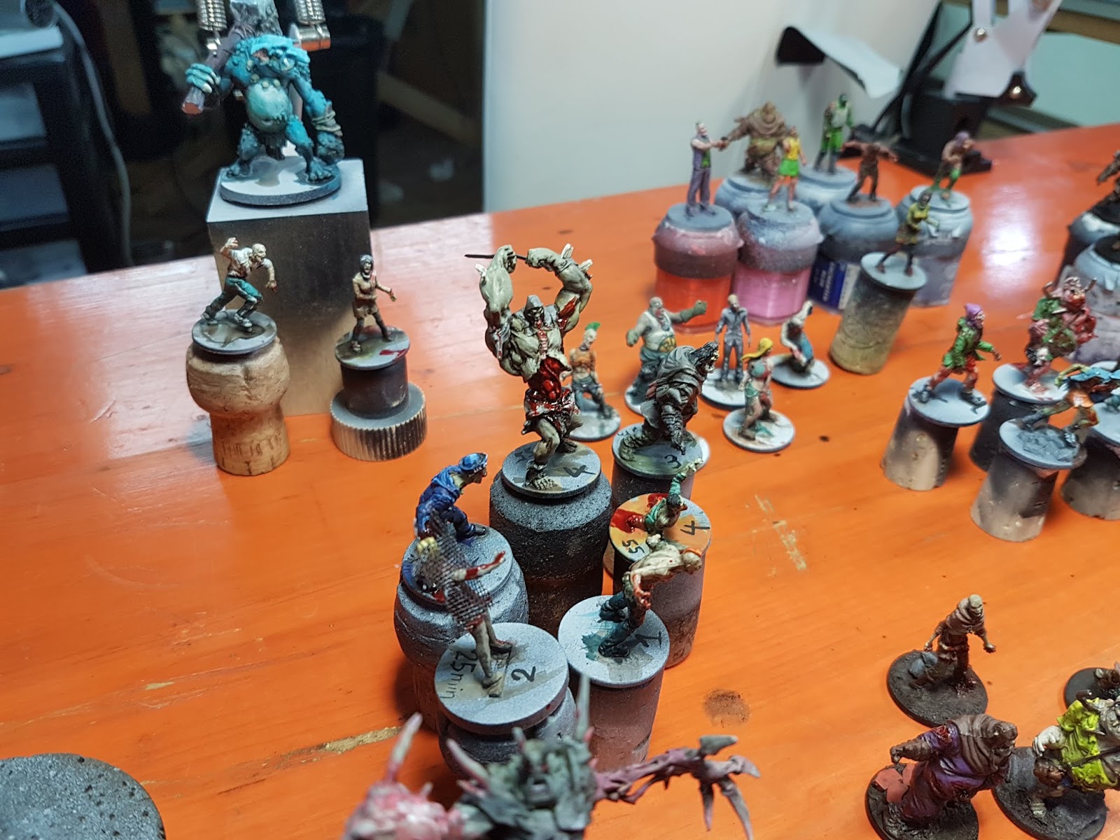 We've meet up in the MV studio and after my explanations it was time for my students to apply the newly learned techniques. First training and then less and less time for painting up one Zombie. Everyone was able to finish several ones ...